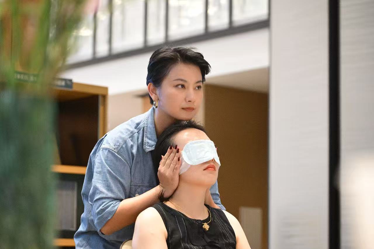10月3日的假日充电健康舒缓沙龙,融合中医理论,带领参与者亲手制作运动损伤舒缓膏,同时传授肩颈按摩手法及运动后疼痛缓解方法,让参与者掌握在家就能进行的基础运动损伤护理技能。10月4日的指尖疗愈减压手作坊人气颇高,现场不仅安排了头疗养护体验,还针对运动人员与特殊群体,专门教授呼吸减压与情绪调节技巧,助力参与者舒缓压力、调节情绪。10月5日的青少年超视力养护沙龙备受欢迎,孩子们在导师指导下动手制作护眼眼罩,同时学习运动护眼与近视防控知识,为青少年视力健康保驾护航。